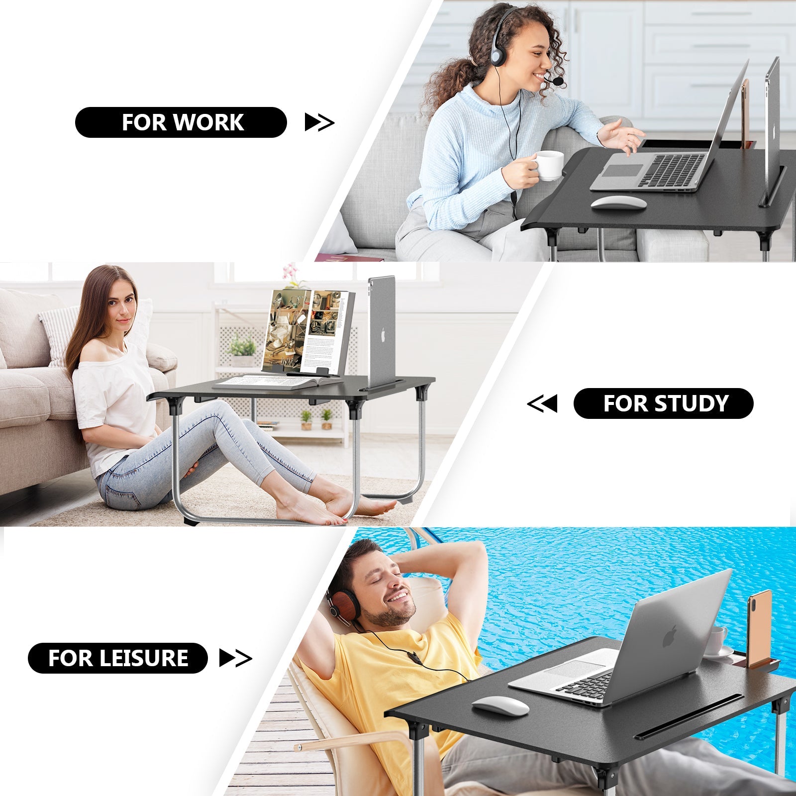 - Supports 88 Lbs - Slide Proof, Collapse Proof: With silicone padded aluminum alloy legs, heavy duty wood & MDF surface and reinforced hinges, joints & pull outs, this large laptop table for bed provides enough stability to safely hold a 70 INCH Flat Screen TV, with the 6.6lb portability that feels light on the fly.