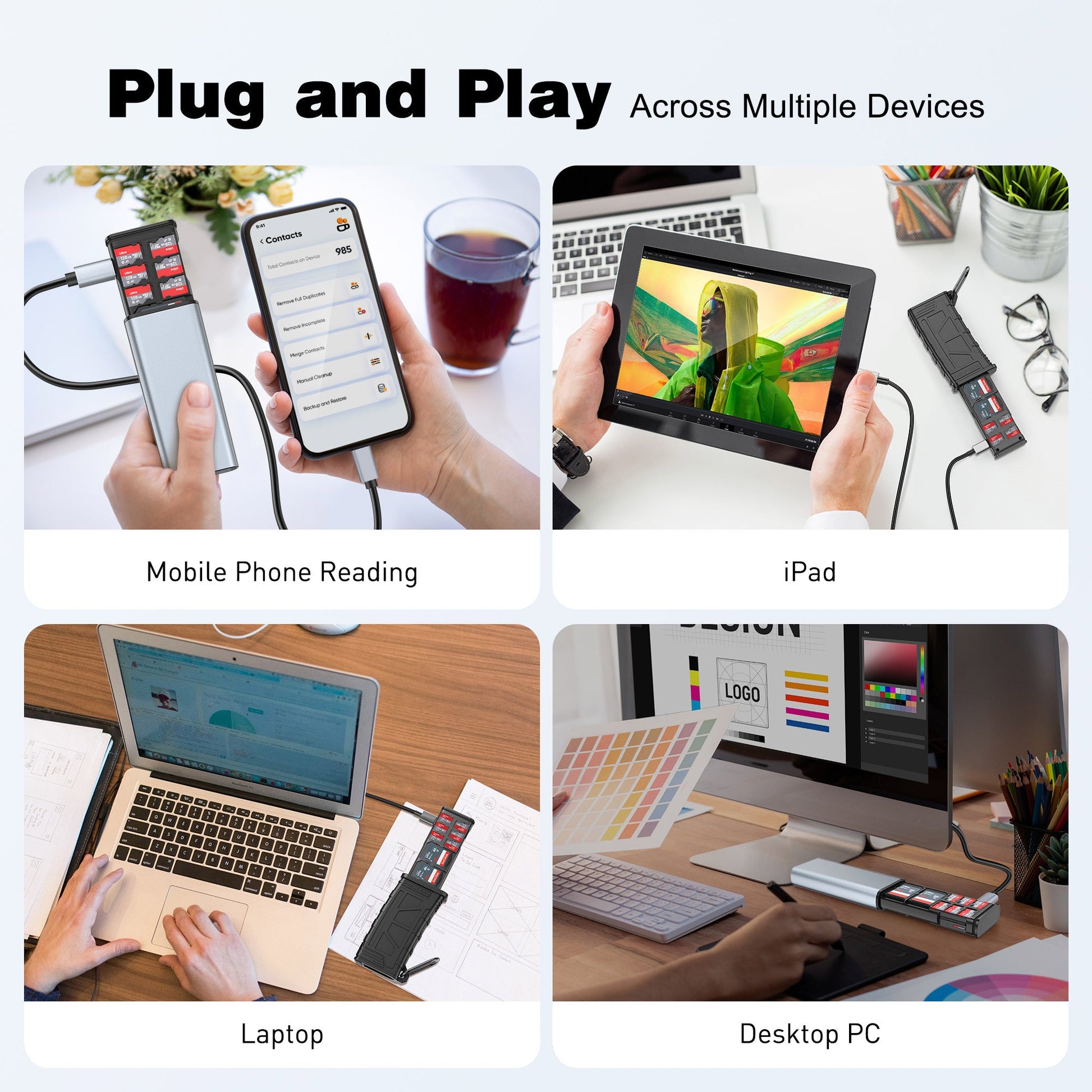 - Multi-Functional SD Card Reader: This versatile device doubles as a portable SD card holder and case, organizing 4 SD cards and 10 TF cards. An ideal best gift for photographers and content creators, it offers seamless data transfer with the high-speed SD card reader USB-C, ideal for cameras, drones, and laptops.