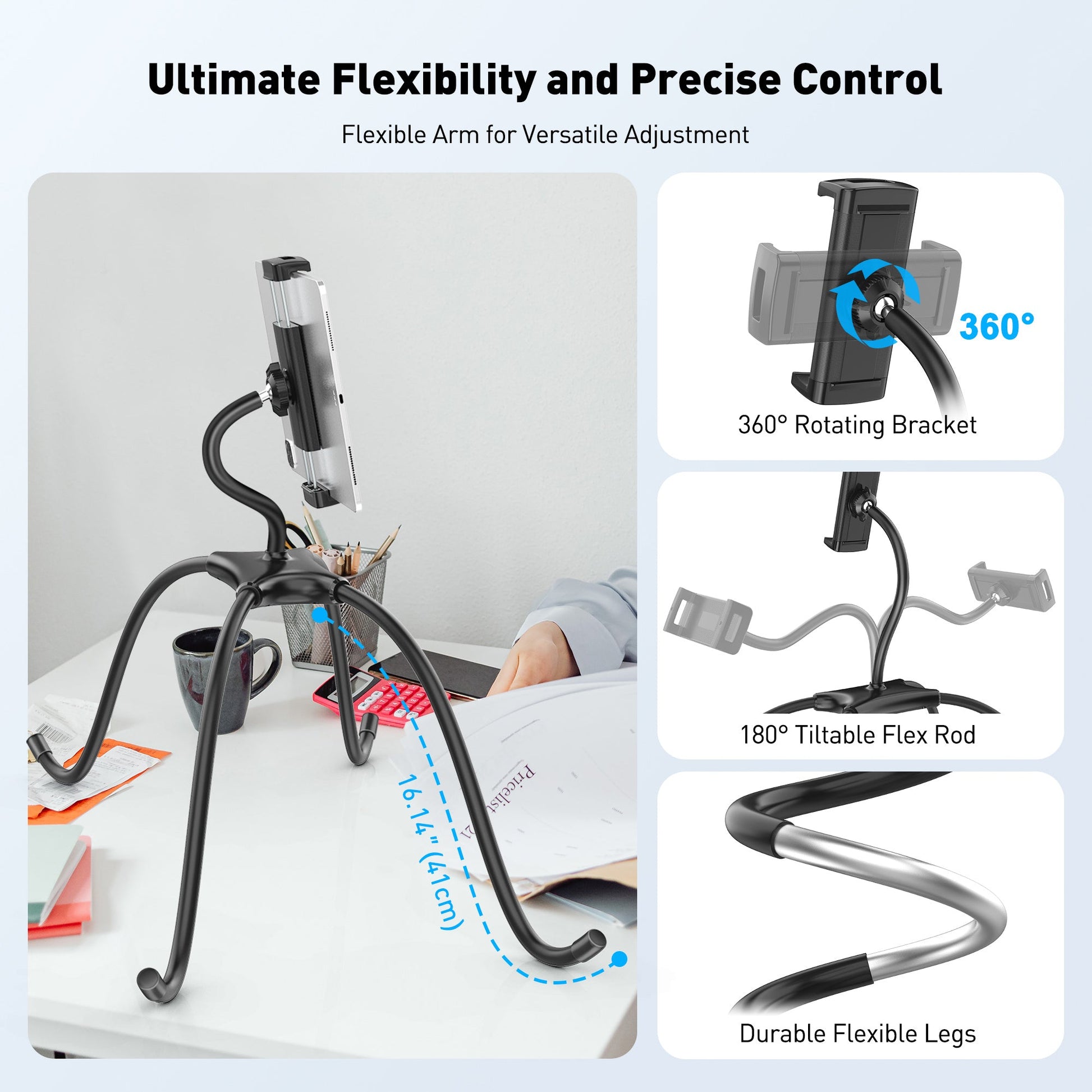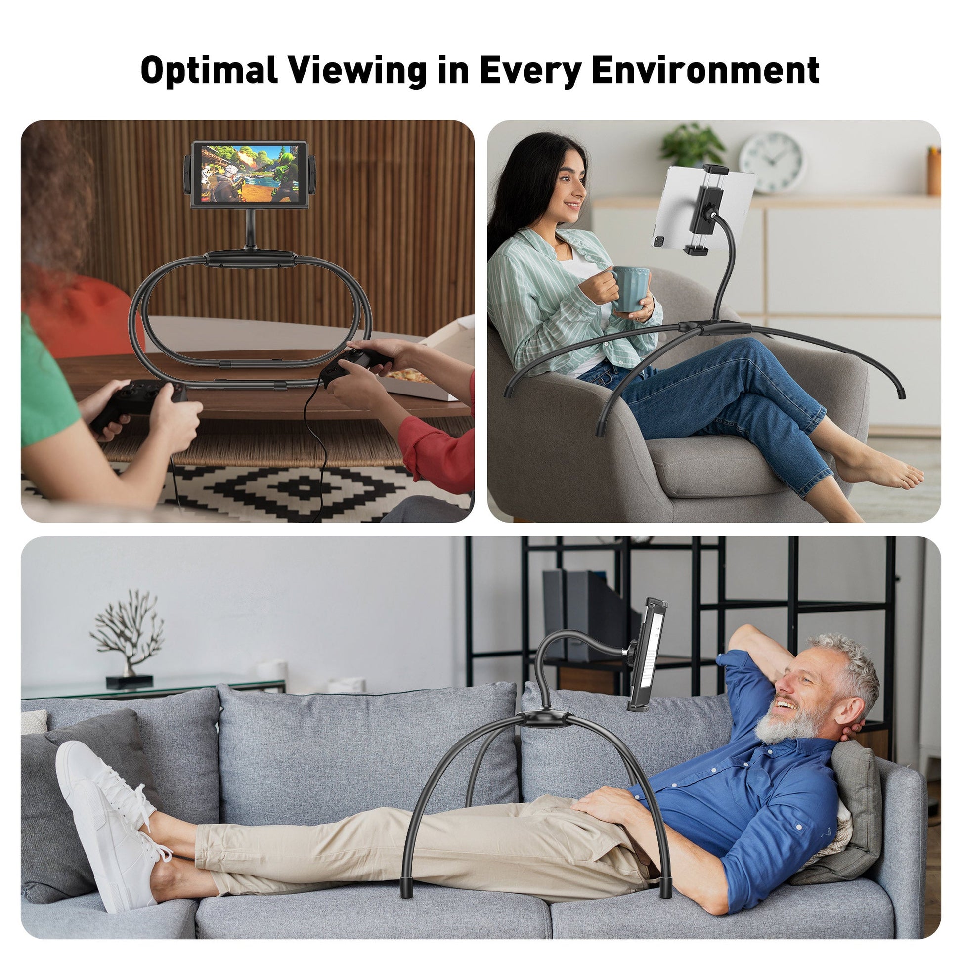 - Robust Build: Crafted from durable ABS, PVC, and Carbon Steel, our ipad bed holder stand is built to last. With four support rods, it promises steadiness and uninterrupted interaction, supporting even heavy devices without wobbling—ideal for everyday use across multiple devices.