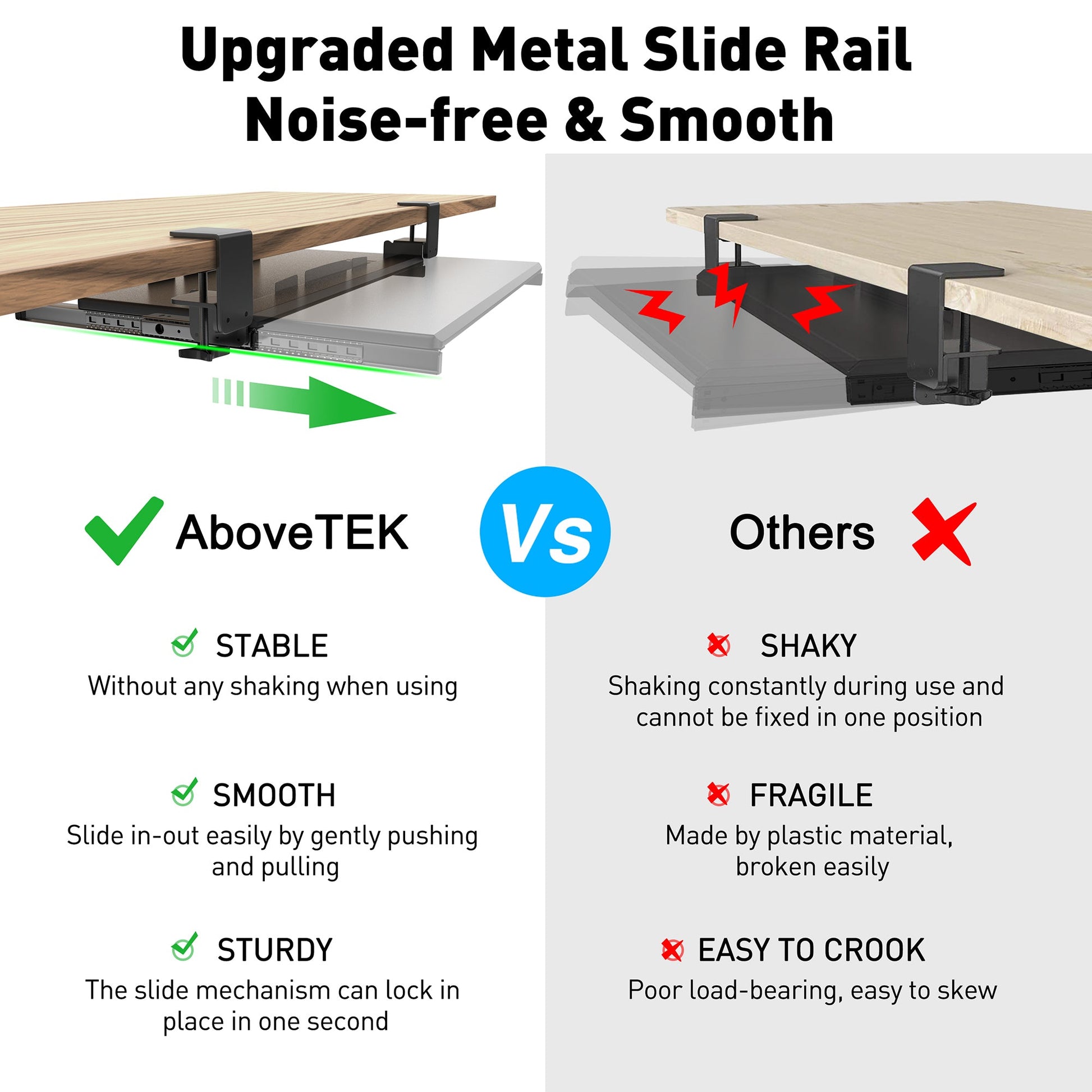- Enhanced Ergonomics: With the wobble-free rails, you can smoothly extend the under-desk keyboard tray, to a maximum of 9.4” from the edge of your desk, to create an ergonomic setup that enables you to type at a more comfortable position and relieve stress on your wrists, neck, and shoulders; also, the premium wrist rest provides additional support and comfort.