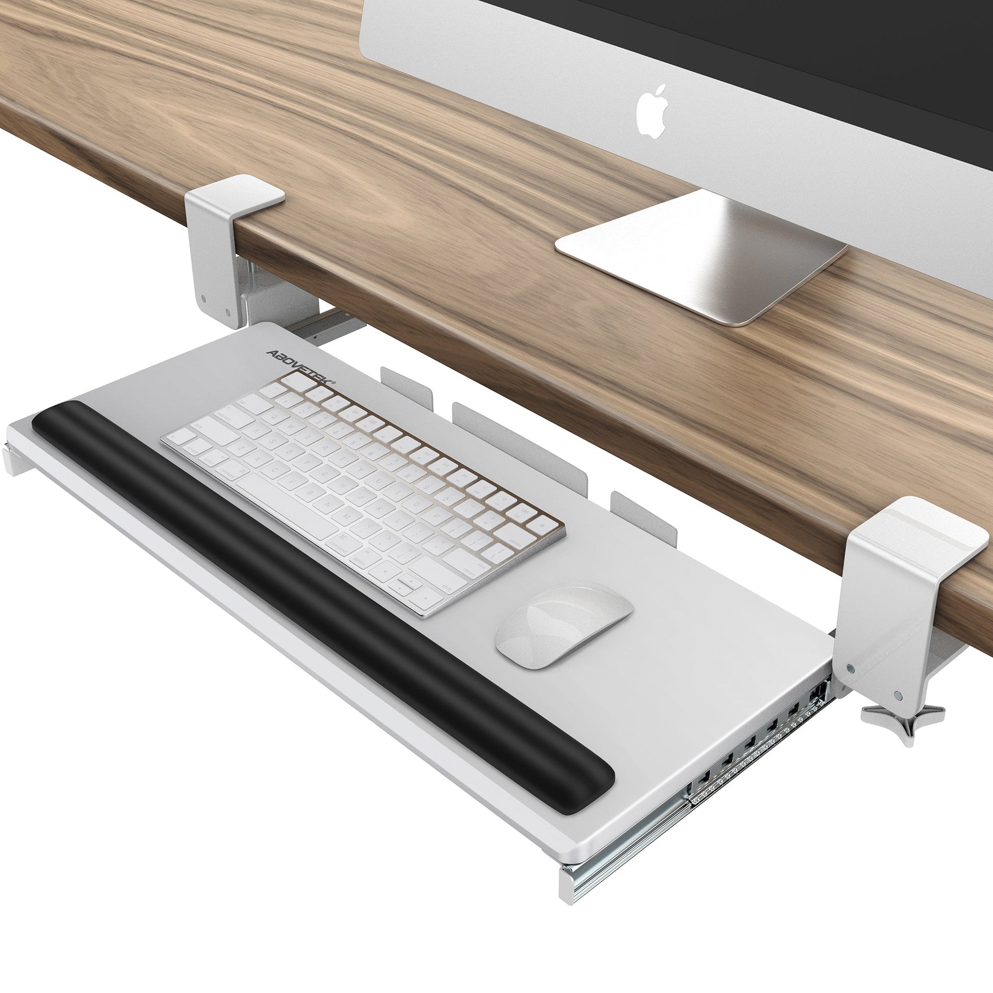 - Sturdy C-Clamps: Securely mount the keyboard tray to your workstation, without causing any damage to your desk, thanks to the incredibly sturdy C-clamps with protective rubber padding; the AboveTEK desk keyboard tray is crafted from solid, skin-friendly and anti-skid MDF board and is designed for maximum stability, with heavy-duty clamps that extend to fit desks up to 2.7 inches thick.