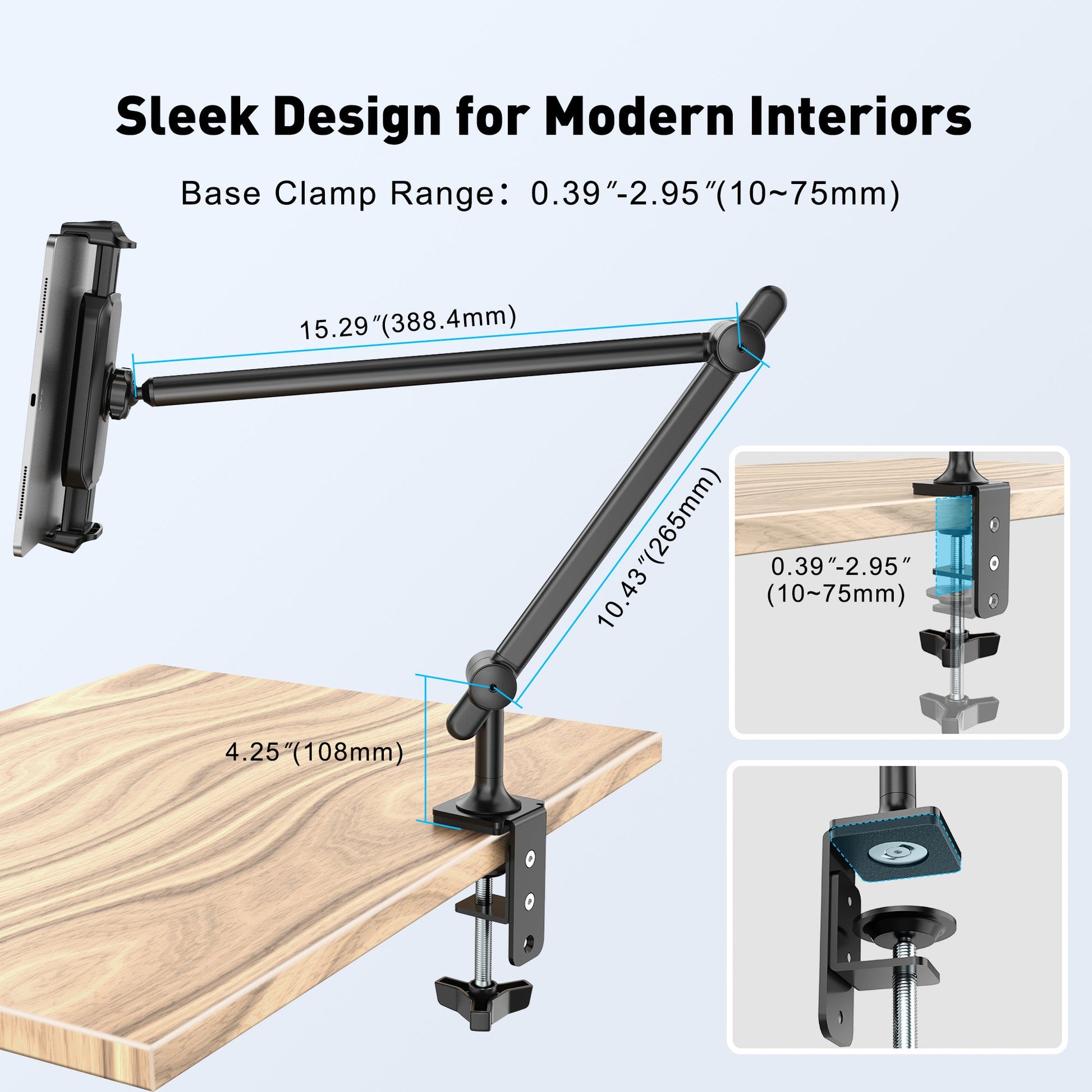 - Lasting Durability with Premium Materials: Made from Aluminum Alloy, Iron, and ABS, our iPad stand and tablet desk mount ensures lasting use. Its sleek design complements modern interiors, blending elegance and functionality.