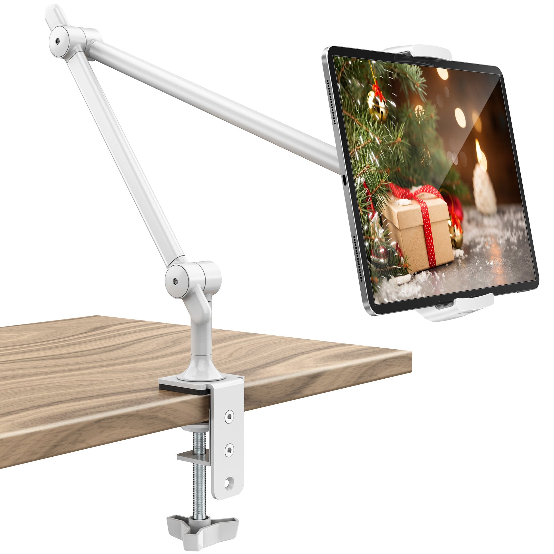 - Flexible 27" iPad Arm for Precise Adjustability: Featuring four adjustable joints (1x255°, 1x305°, 2x360°), this drawing tablet stand offers a wide range of motion. Achieve the perfect viewing angle, making it an essential iPad holder in bed or on the desk.